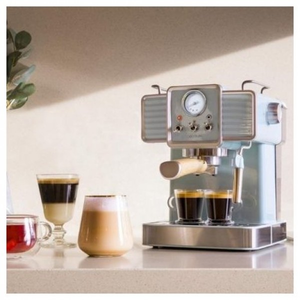 - Cafetera express para café espresso y cappuccino de 1350 W con diseño vintage.