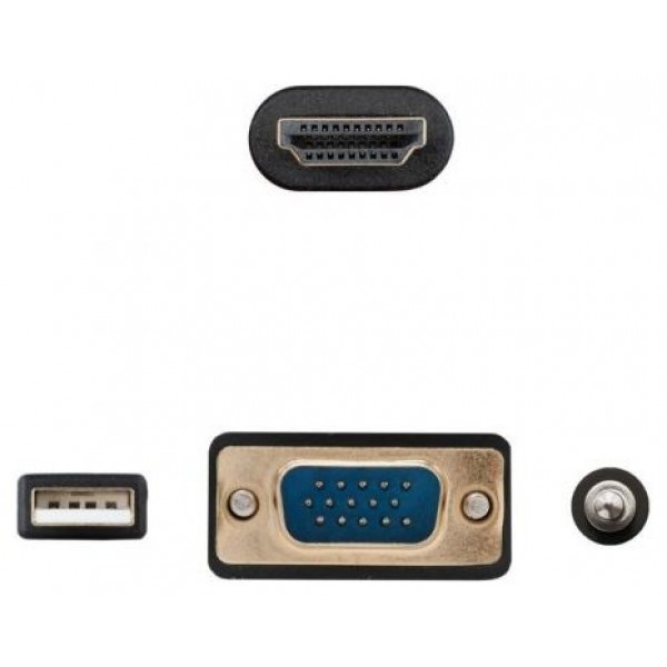 - Incluye cables adicionales para audio y alimentación USB, asegurando la conversión de la señal VGA analógica a digital HDMI (siempre que la fuente y la pantalla sean compatibles)