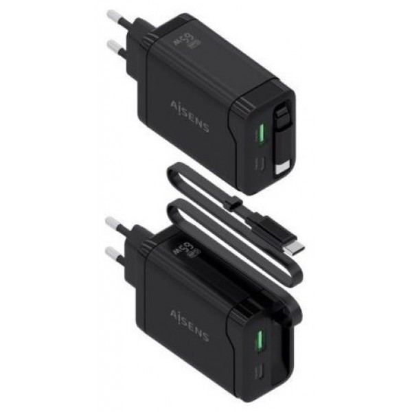 Cargador de Pared GaN Aisens A110-0971/ 1xUSB Tipo-C/ 1xUSB/ 45W/ BlancoA110-0971 – Cargador GaN 45W..