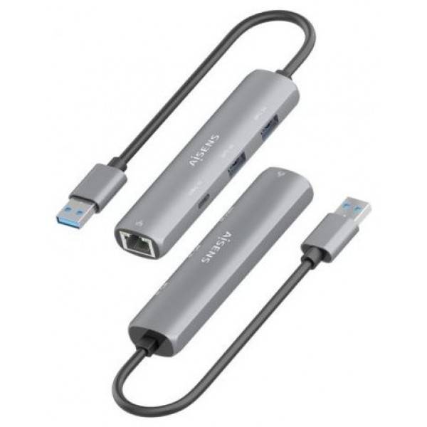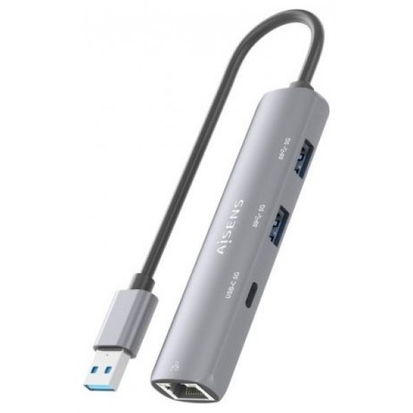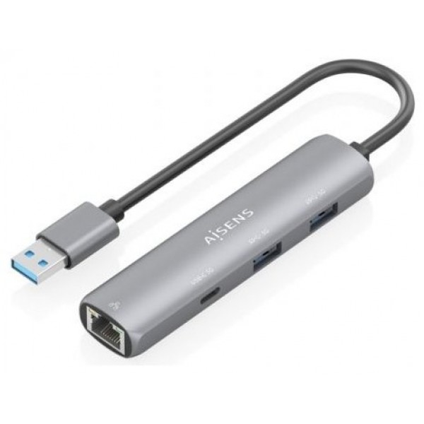 ASUC-4P035-GR – USB3.0 Dock USB-A a Ethernet Gigabit + HUB 1xUSB-C+2xUSB-A, GRIS, 15cm