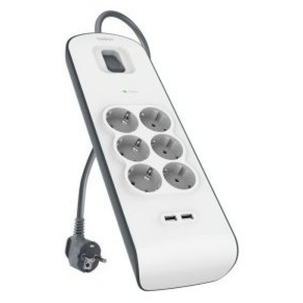 REGLETA ALIMENTACION BELKIN BSV604VF2M-V2 PROTECCIÓN CONTRA SOBRET 6 TOMAS + 2 USB- A 2,4 BOTON