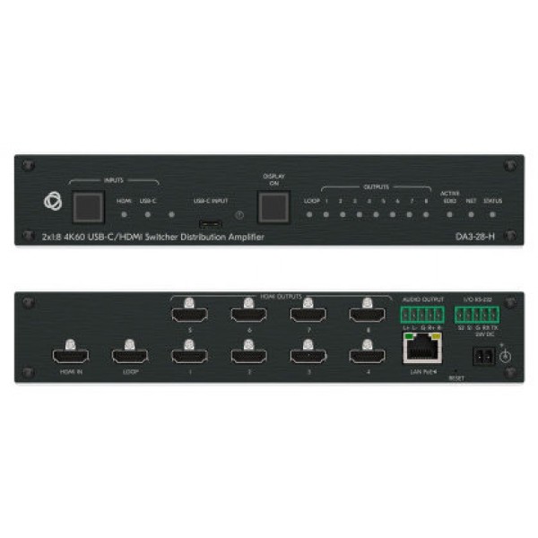 KRAMER AVSM 2X1:8 4K60 USB-C/HDMI SWITCHER DISTRIBUTION AMPLIFIER- DA3-28-H (10-00002890).