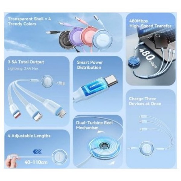 - Nombre: Cable de carga retráctil USB 2.0 3 en 1