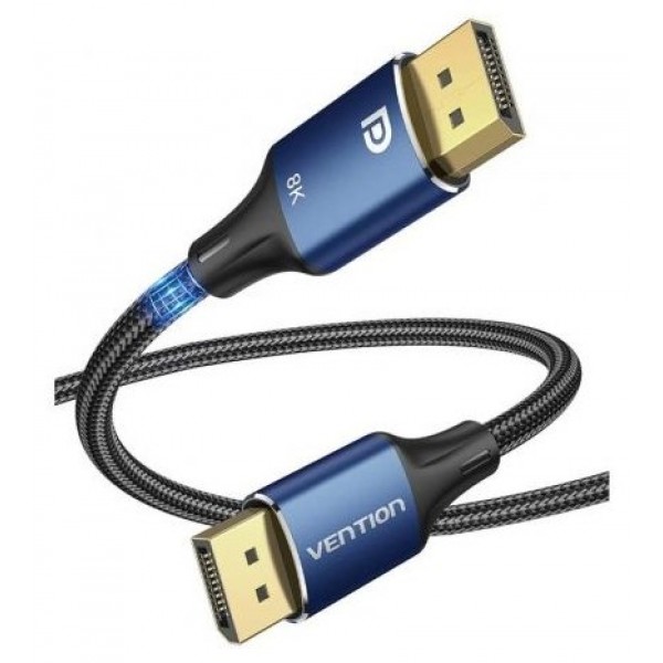 Cable DP macho a macho HD trenzado de algodón 8K tipo aleación de aluminio azul
