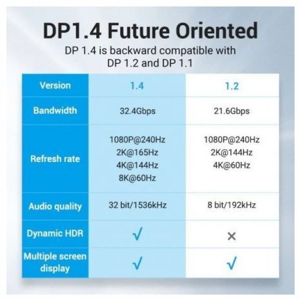 No es solo un cable, es una inversión en la mejor experiencia visual. Actualice al cable DisplayPort 1.4 8K y acceda a un mundo de claridad impresionante, rendimiento inigualable y entretenimiento envolvente