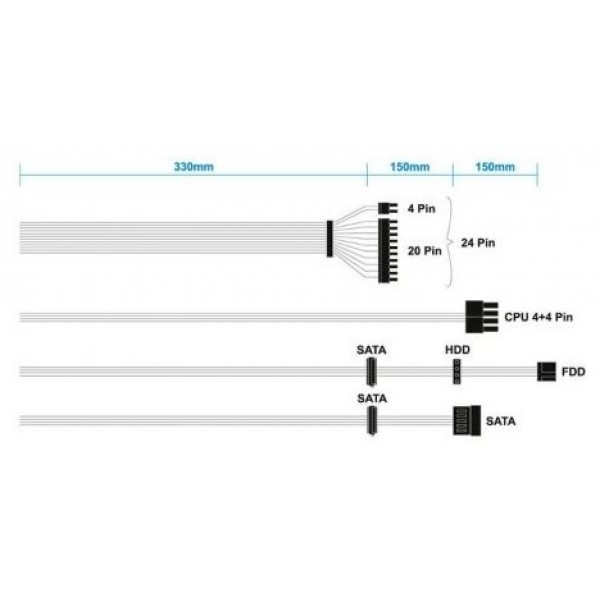 - 1 conector SATA + 1 conector Molex + 1 conector mini-Molex (tipo Floppy, 4 pines) 330+150+150mm