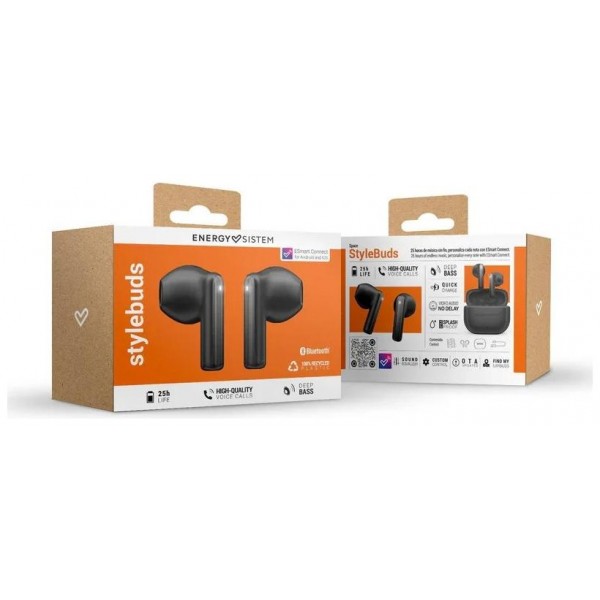 | Características | - Cancelación de ruido en el micrófono (ENC) - Duración de la batería de 25 h - Llamadas al cuartel general - Bajo profundo - Carga rápida - Baja latencia - Certificación IPX4 - Plástico reciclado (GRS) y cartón reciclado (FSC) - Conexión inteligente Contenido - Auriculares Stylebuds - Cable USB Tipo C |