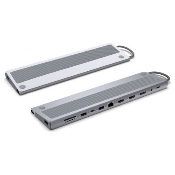 | Características | - Tipo de producto: Docking station USB-C multipuerto 12 en 1 - Conectividad: USB-C 3.2 Gen 1 - Puertos: 3x USB 3.2 Gen 1 Type-A 2x HDMI 4K@60Hz 1x DisplayPort 4K@60Hz 1x RJ-45 (Ethernet 1Gbps) 1x USB-C PD 100W 1x lector de tarjetas SD 2.0 1x lector de tarjetas microSD 2.0 1x conector de audio/micrófono 3.5mm - Resolución máxima de video: Hasta 4K@60Hz en tres pantallas simultáneas - Material: Aluminio - Color: Gris espacial - Plug & Play: Sí - Compatible con sistemas operativos: Windows, macOS, Linux Dimensiones y peso - Dimensiones: 210 x 60 x 20 mm - Peso: 300 g |