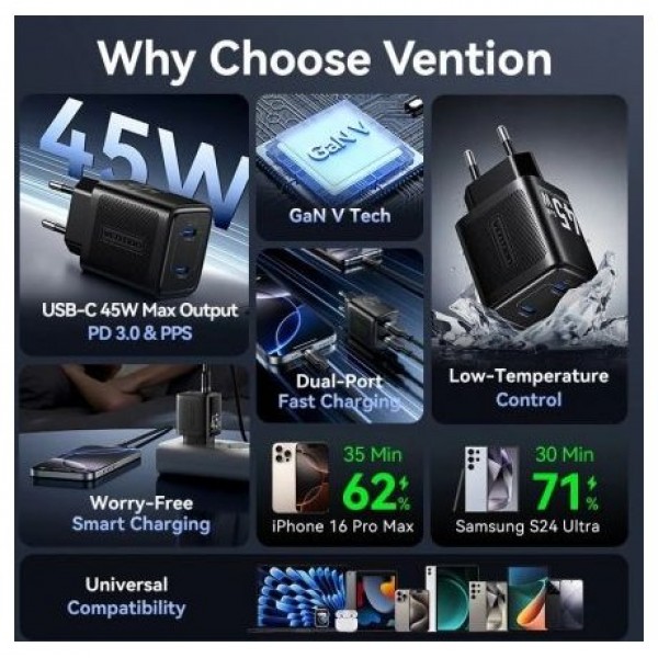 Cargador de Pared GaN Vention FEFB0-EU