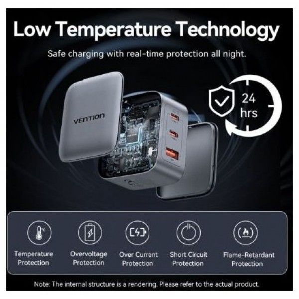 - Nombre: Cargador GaN USB de 3 puertos (C+C+A) (70W/70W/22,5W) enchufe EU gris