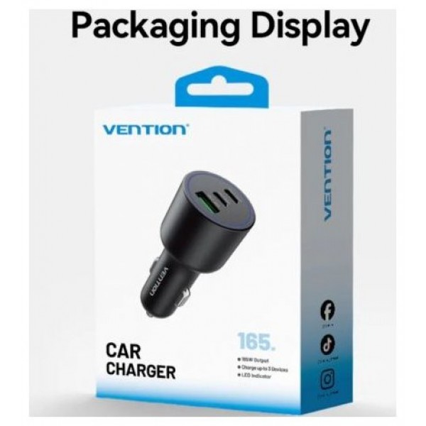 CARGADOR PARED 100W 2xUSB-C/USB-A NEGRO VENTION (Espera 4 dias)