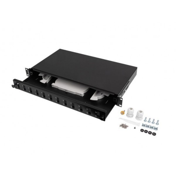 PATCH PANEL LANBERG 1U 19" FIBRA OPTICA 12 PTS SC DUPLEX O 12 LC QUAD BK+ACC