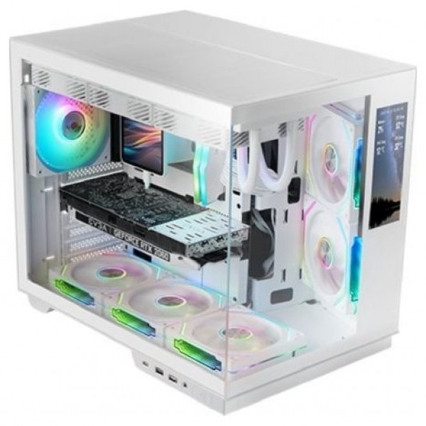 Descubre la MC-MIRAGE, una caja gaming ATX que lleva la personalización y el rendimiento a un nuevo nivel gracias a su exclusiva pantalla integrada LCD IPS de 7,2” y su elegante diseño panorámico en cristal templado. Con una estructura de doble cámara, compatibilidad avanzada y espacio para hardware de última generación, está creada para entusiastas, gamers y creadores que buscan un setup único, sofisticado y cargado de innovación.