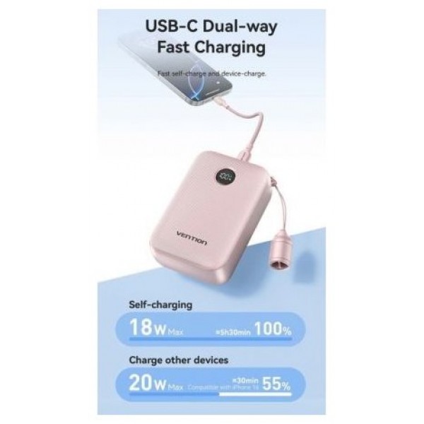 Powerbank 10000mAh Vention FKAN0-C/ 22.5W/ GrisVention 10000mAh Power Bank 22.5W10000 mAh 22,5 WCabl..