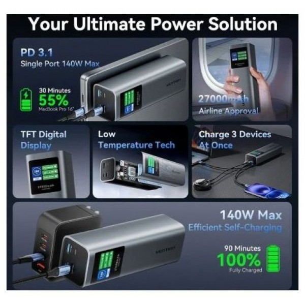 Vention 27000mAh Power Bank 140W