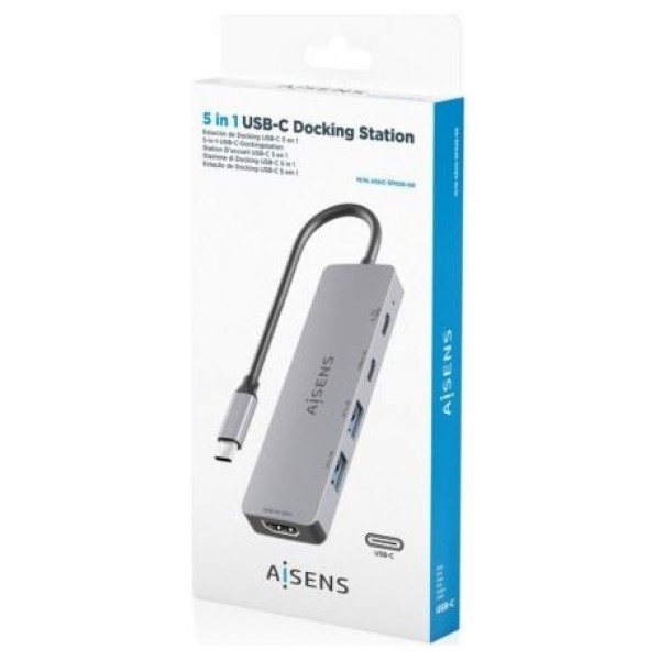 ASUC-5P028-GR – USB-C Dock 5 en 1, USB-C a 1xHDMI 2xUSB-A 1xUSB-C 1xUSB-C PD, Gris, 15CM