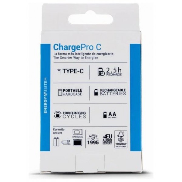 Características | - Juego de pilas AA recargable - Tiempo de recarga: 2,5 horas - Capacidad: 3405 mWh / 2270 mAh - Voltaje de salida: 1,5 V - Potencia máxima de salida: 3,75 W - Modo de carga: Tipo C |