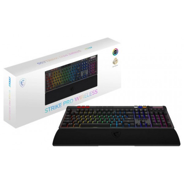 MSI Strike Pro Wireless - Teclado mecánico silencioso para Gaming, Interruptor táctil silencioso, Teclas PBT 2,4 GHz, Bluetooth, RGB Mystic Light para Cada tecla, batería de 4200 mAh, diseño