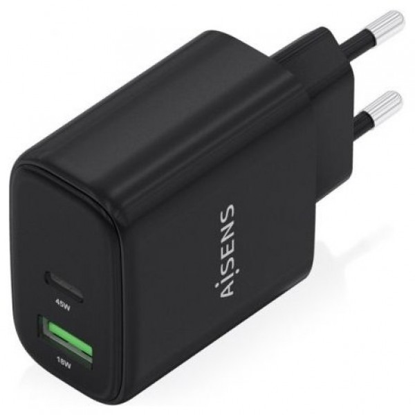 A110-0972 – Cargador GaN 45W, 1xUSB-C PD3.0 QC4.0, 1xUSB-A QC3.0, Negro
