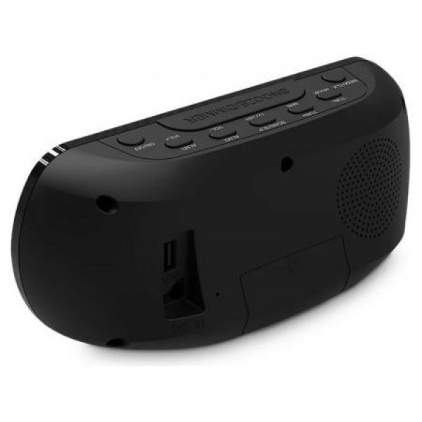 Radiodespertador con pantalla LED de alta definición con dígitos de gran tamaño. Intensidad de luz regulable en 3 niveles y opción de apagado total. Memoriza 2 alarmas, función Snooze con varias repeticiones y temporizador de apagado.