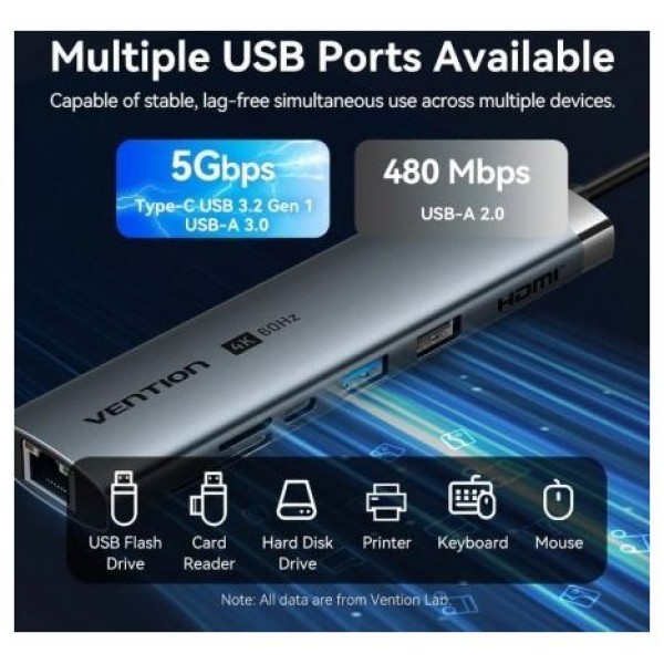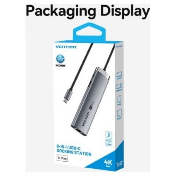 Vention Docking Station USB-C a HDMI/ USB-C 3.2Gen1/ USB3.0/ USB2.0/ RJ45/ SD/ TF/ PD TGUHB 0.15m Aluminio