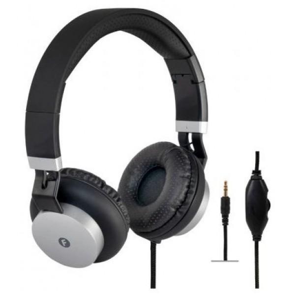 Cable extraíble de 5 m con recubrimiento textil y control de volumen. Se conecta a los auriculares mediante conector jack 3"5 mm estéreo.