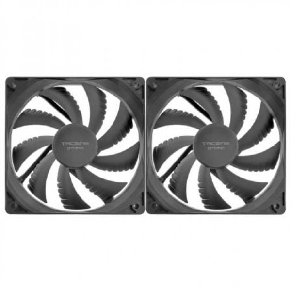 . . Tipo de producto: Ventilador interno para ordenador. Dimensiones del ventilador: 120 mm x 120 mm x 25 mm. Nivel de ruido (mín.): 14 dB. Tecnología de rodamiento: Fluxus Bearing. Tecnología de aspas: Air-Guide. Conector: 3-pin (algunas variantes pueden incluir un adaptador a Molex de 4-pin). Voltaje: 12 V DC. Corriente: No especificado. Velocidad del ventilador: No especificado (típicamente entre 800-1200 RPM para este nivel de ruido). Flujo de aire: No especificado. Color: Negro (generalmente). Dimensiones y peso:. Dimensiones (por ventilador): 120 x 120 x 25 mm. Peso (por ventilador): No especificado. Peso del paquete (aproximado): No especificado. Incluye:. 2 Ventiladores Tacens Anima AF12X2.. Tornillos de montaje.