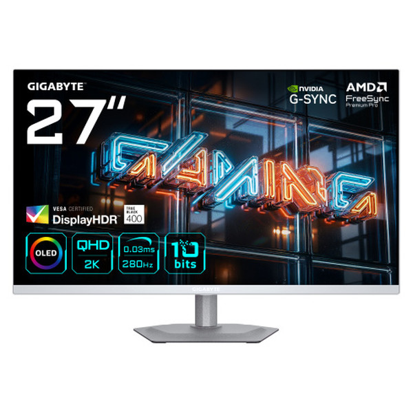 GIGABYTE MO27Q2A ICE Monitor Gaming OLED 27” 2K QHD - 2560 x 1440, 280Hz, 0.03ms, 250 cd/m², FreeSync Premium Pro, DisplayHDR True Black 400, HDMI 2.1, DisplayPort 1.4 (Espera 4 dias)
