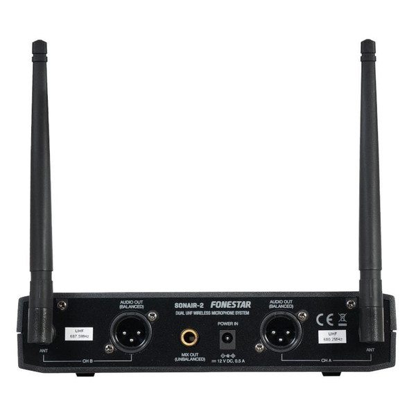 Formado por un receptor doble y dos transmisores de micrófono inalámbrico de mano con cápsula dinámica unidireccional que maximiza la captación directa de la voz y rechazo de ruidos y sonidos indirectos.
