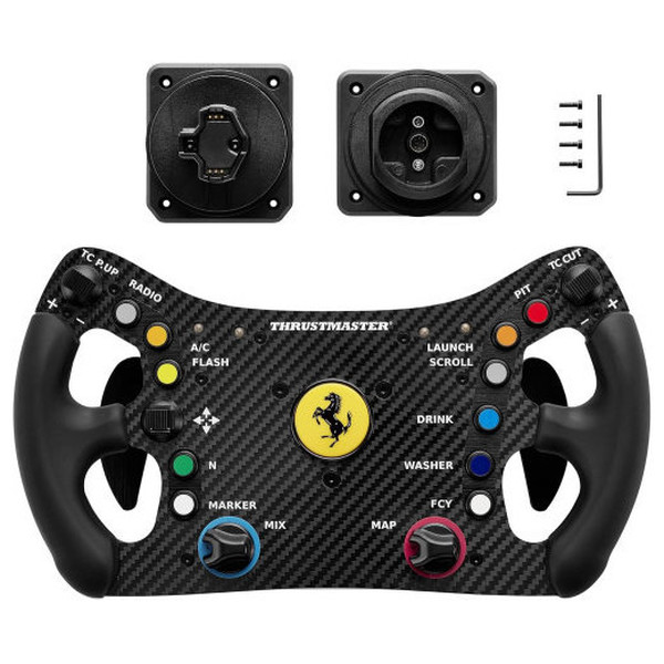 El Ferrari 488 GT3 Wheel Add-On ha sido especialmente diseñado para ofrecer rendimiento, gracias al peso optimizado con su placa frontal central con revestimiento de fibra de carbono y sus 31 cm de diámetro. Este diseño permite a los pilotos aprovechar al máximo la potencia de su base de volante de carreras, transmitiendo un Force Feedback detallado y facilitando una conducción extremadamente precisa, dos aspectos esenciales para la competición.