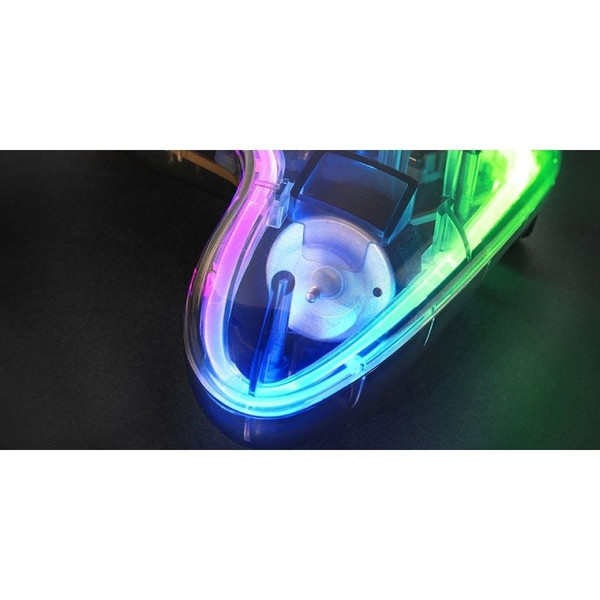 Admira la belleza electrónica y mecánica del MGP-24 a través de su acabado negro translúcido y deslumbra con su espectacular sistema de iluminación multimodo RGB por fibra óptica.